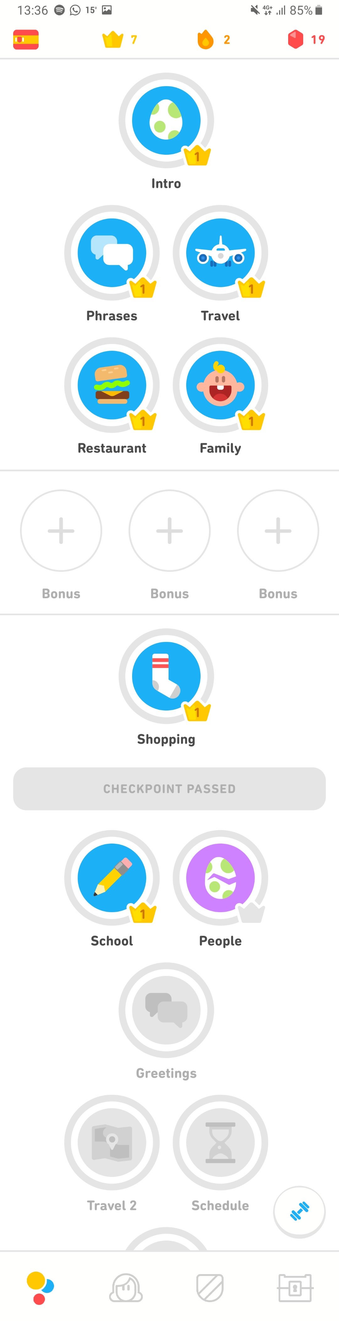 Finally I decided I wanted my train commute to be more productive, my walking time is being used to listen to podcasts, but my train time is currently free. I get the train with my girlfriend, who has been using Duolingo to brush up on her Spanish which she learned at school, so I decided to download it and try to learn Spanish too! I am not sure how good an idea that is considering I am already trying to learn multiple coding languages at Makers, but we will see how long I can keep this up!