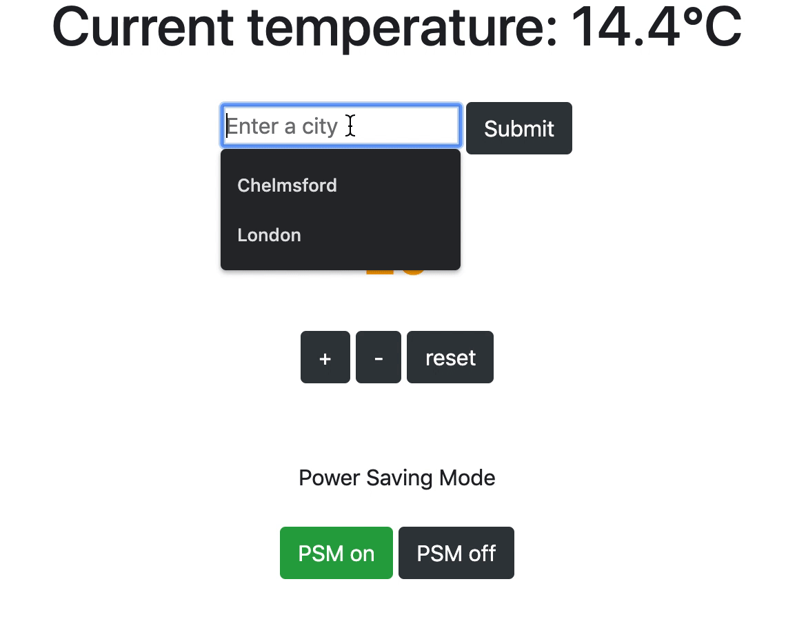 In the afternoon we worked on a thermostat app using JavaScript. Here are the features we needed to implement: