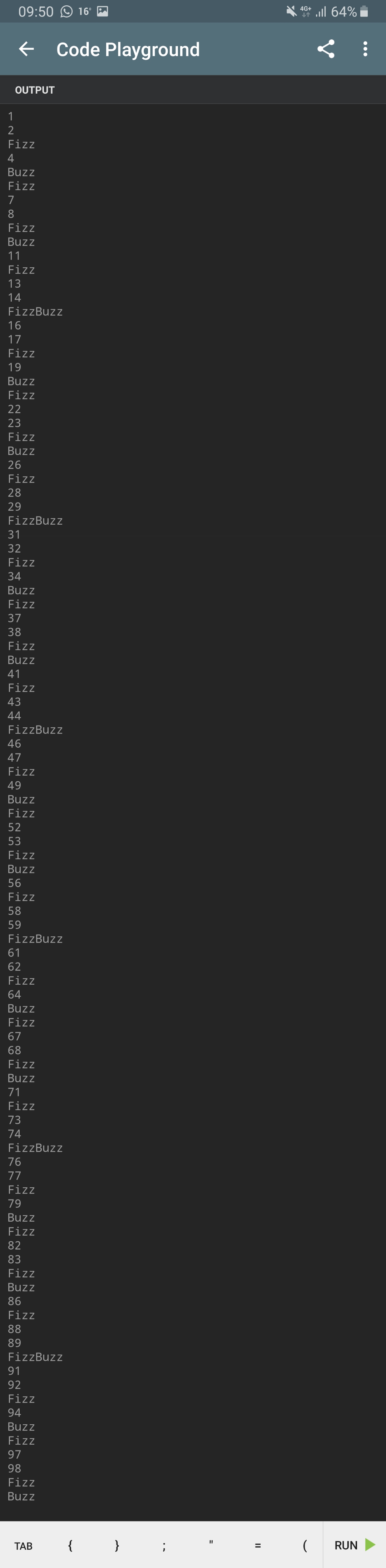 System.out.println(runFizzBuzz(x));