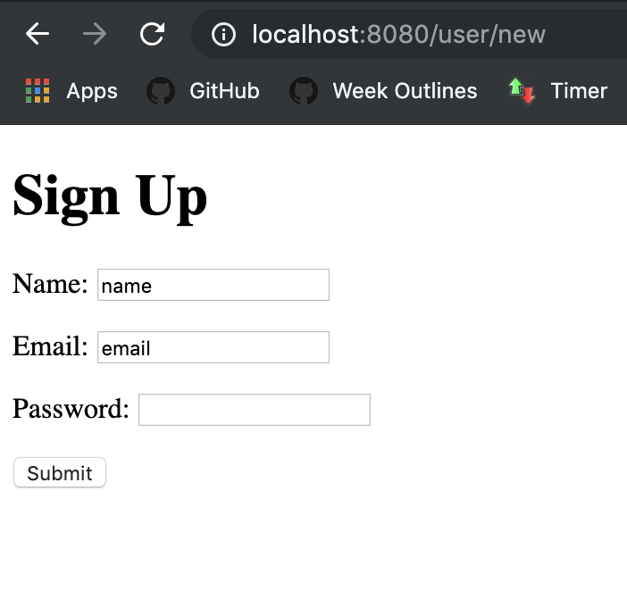 The next feature we decided to tackle was the ability for users to sign up. We knew this would be quite similar to posting in many ways, so we followed similar steps.