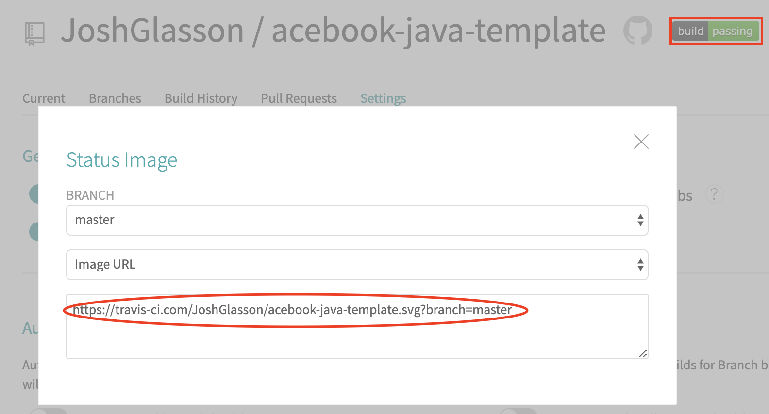 You can get the link on the Travis page, by clicking the build status next to the name of the repo: