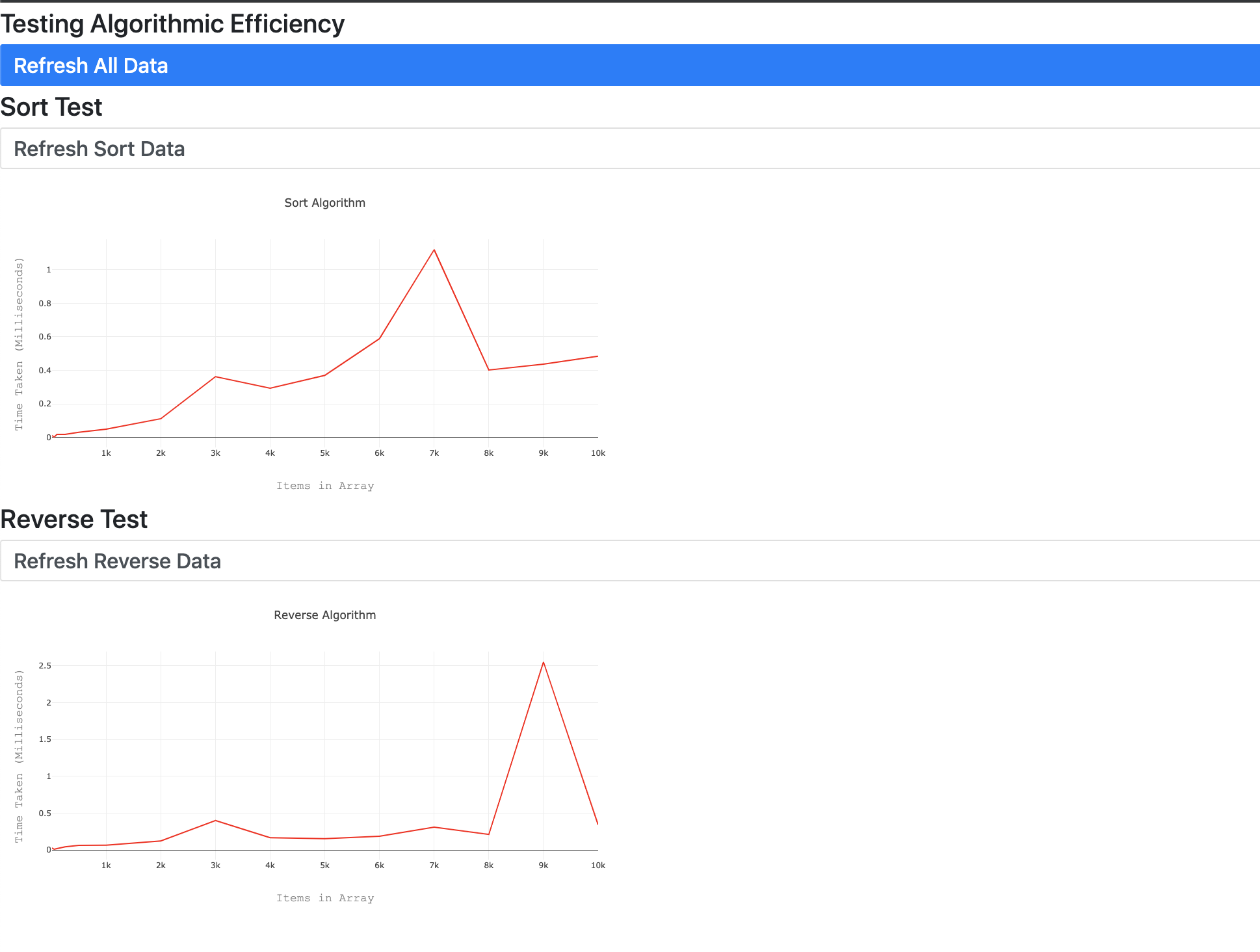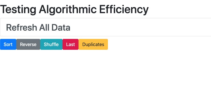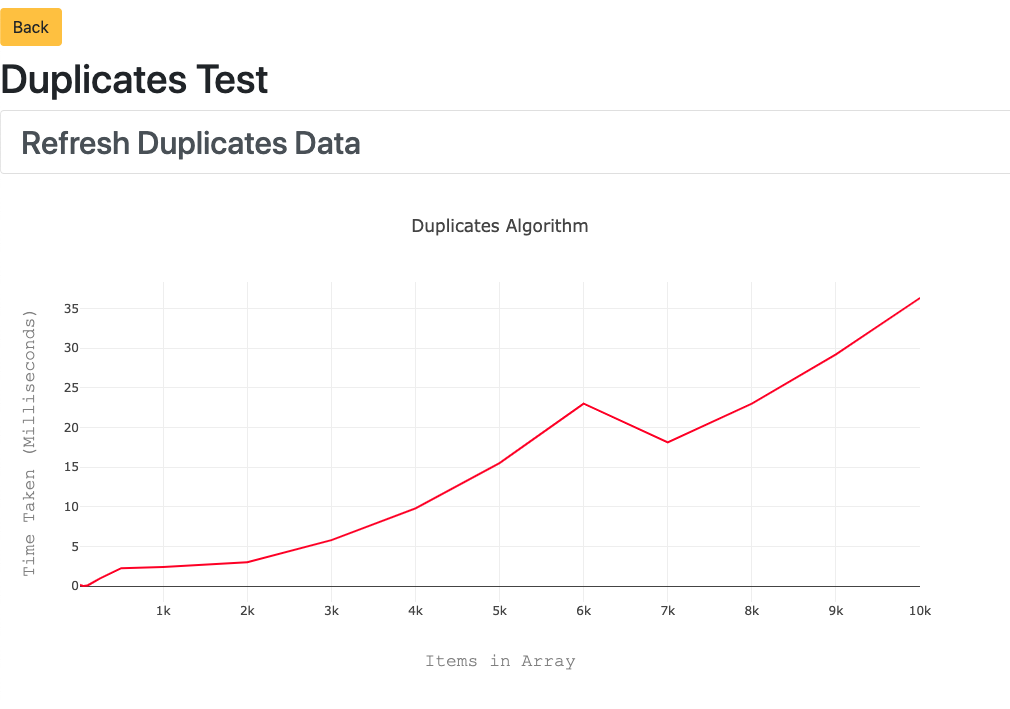 In the afternoon we added even more algorithms to test. I created a front page so you could refresh them all from here and go to the individual test you wanted. I also added some trickery in to disable buttons after you press refresh. If you navigate away from the page before it updates, it causes issues!