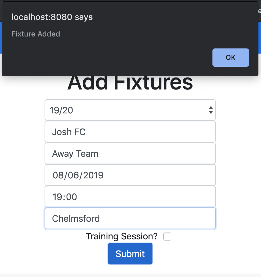 This prevents a load of empty entries being put into the database. I also added a message to confirm that a fixture had been added.
