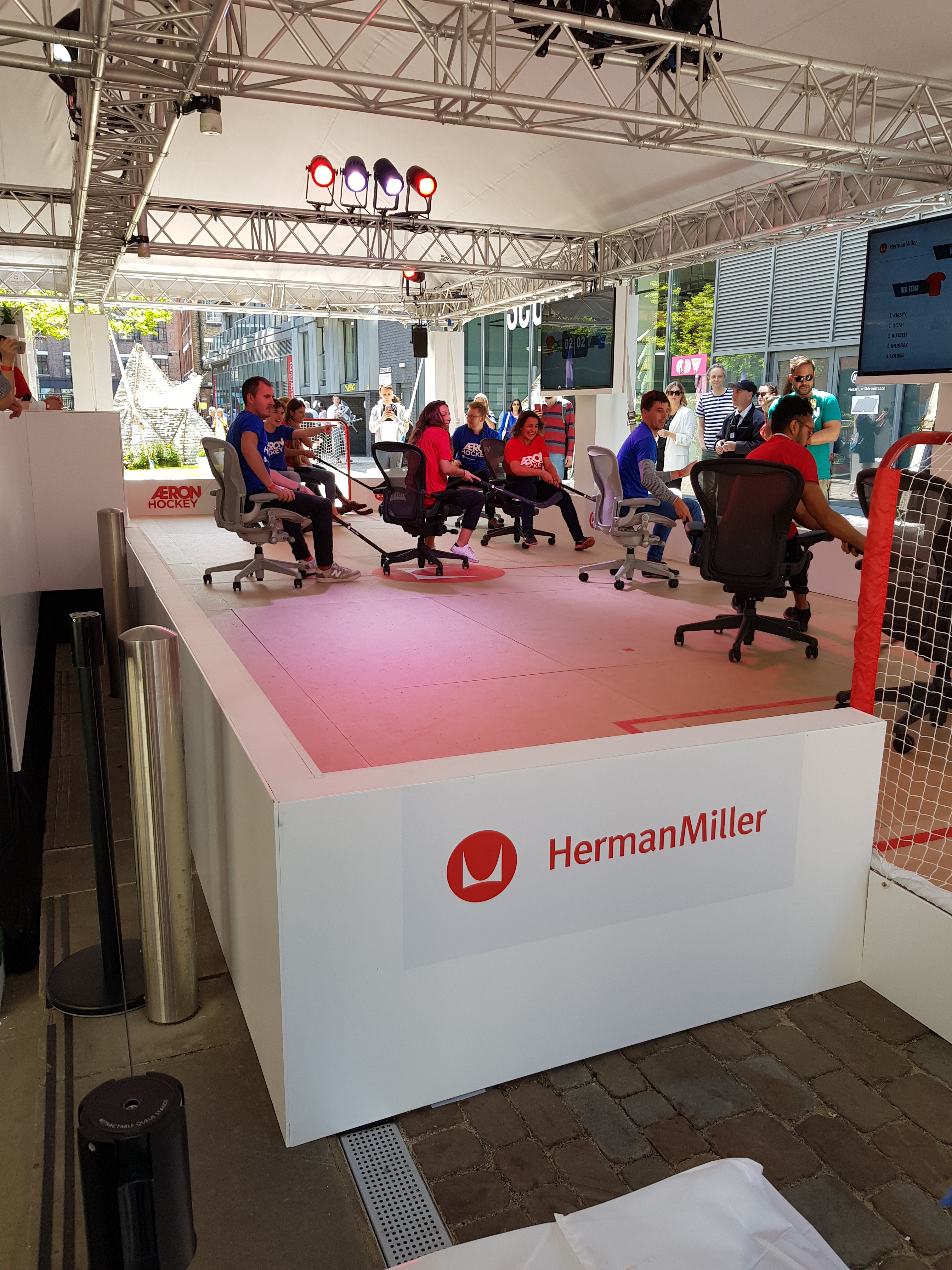 I am not sure what was going on, but there was some kind of event on today near our office. Firstly there was office chair hockey.
