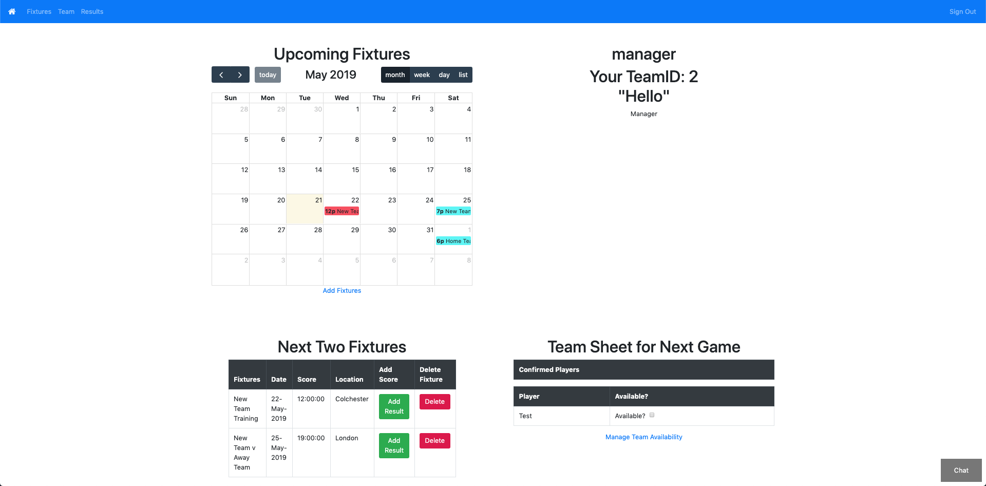 You may also be able to see I moved the links to places that make more sense, Add Fixtures is now under the calendar, and Availability has been renamed and moved under the team sheet. The space in the top right is where our pitch will be going today.