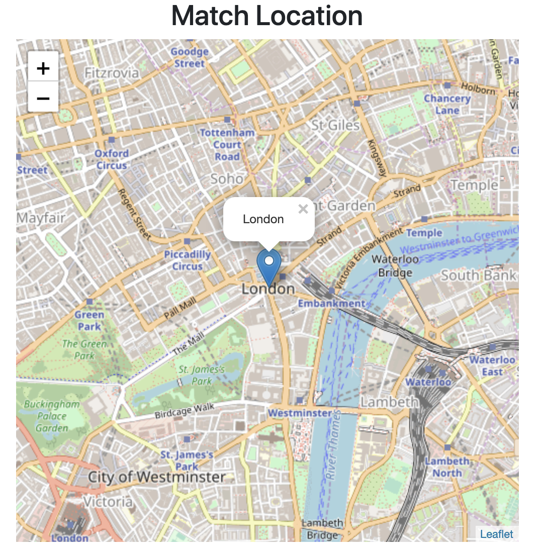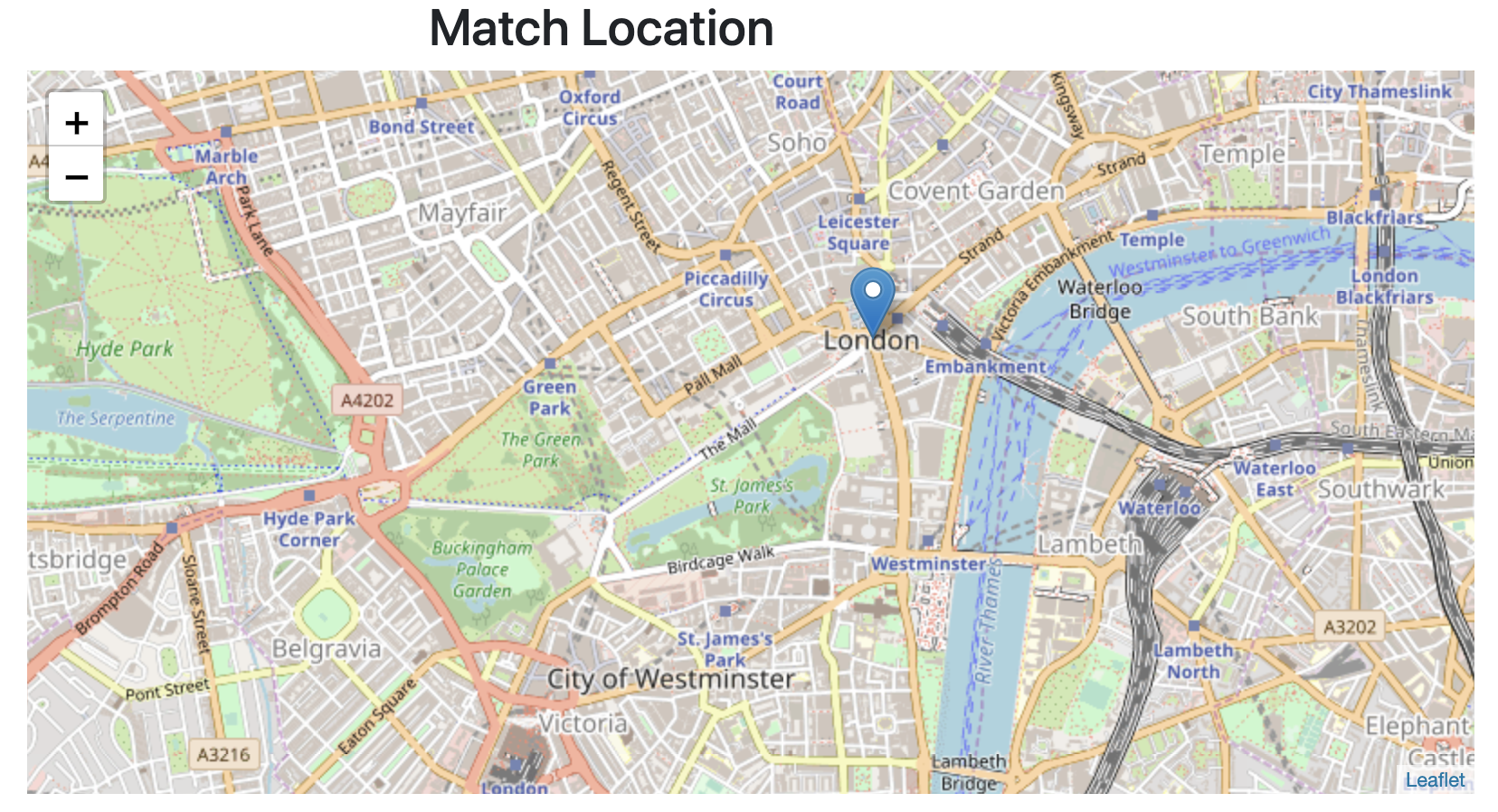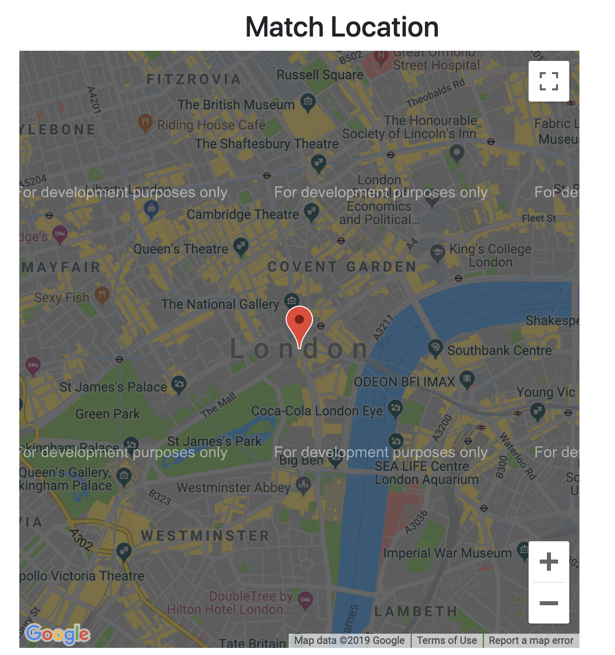 One of the extra features we wanted to implement was showing our next match location on a map. Phil did find a tutorial to do it with Google Maps API, but this was not free so the map would show development mode only over the top.