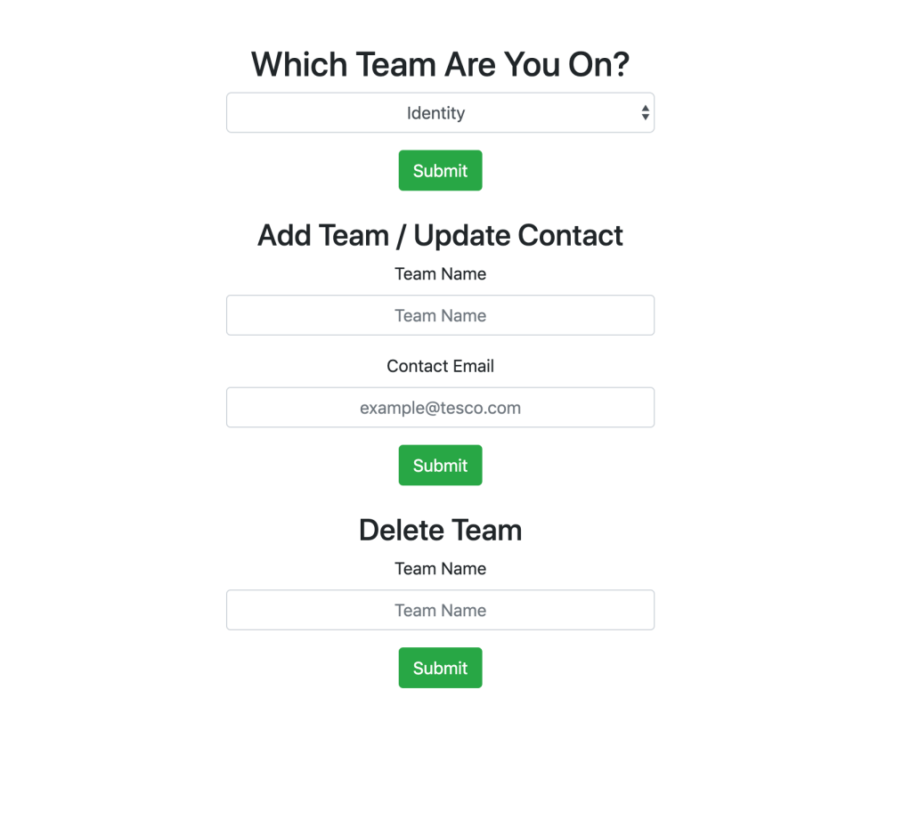 We also added the ability to add different URLs by team, and then only view the information for your team. Unlike in GitClub, I tried not to break how React usually works and stuck to only using one hook. This meant instead I used some logic to change what was shown on the page. The form to select team is actually at the same address as the page with the tables, I just set a variable flag to switch what was rendered.