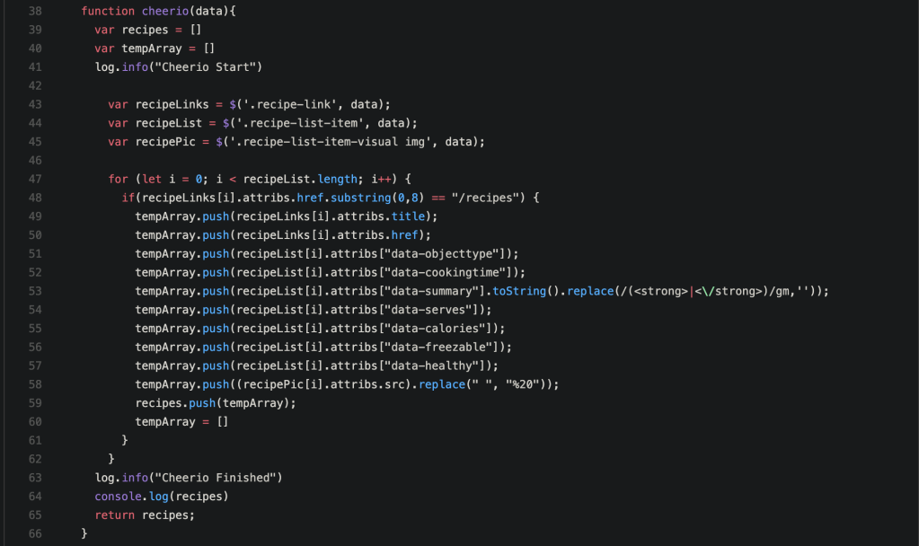 Because of this, I learned how to scrape webpages! Scraping basically means going to the webpage and retrieving all of the data off of it. You can do a quick, basic HTML scrape which grabs all the visible information as soon as the page loads, or you can do a JavaScript enabled scrape which allows you to change and load elements on the page before retrieving the data. The data can then be sorted through, I used a program called cheerio to do this, allowing you to only get the information you want.