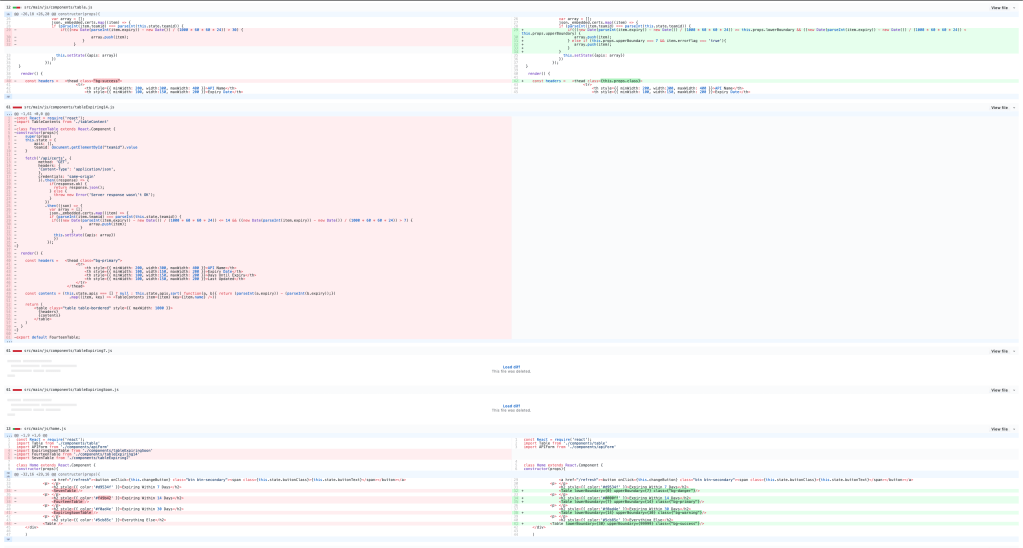 This refactor really reduced the size of code, as shown in the below diff on Github. I had to zoom way out to show all the code I was able to delete, so it is tough to read!