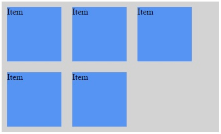 This causes the content to wrap within the container. If the content exceeds the width of the container, it is placed on the next row.