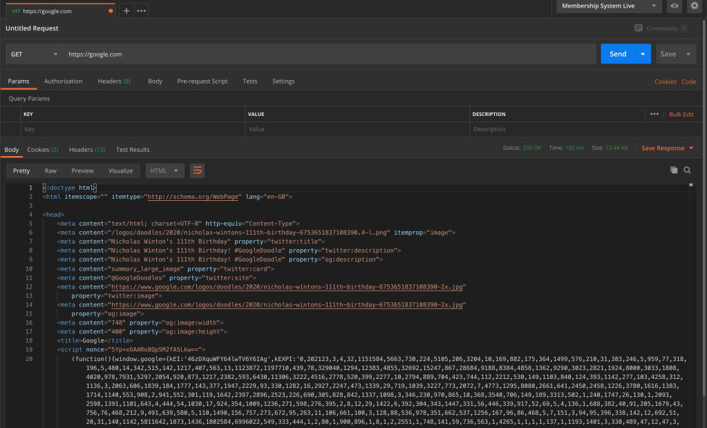 As this is a simple request, we are not sending any headers or paramters, so we can cover those later. Therefore in terms of the request, that is all!