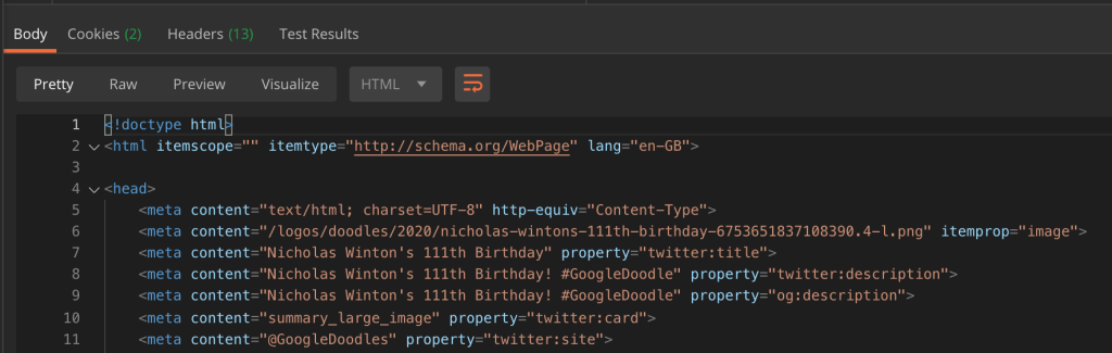We can also see the body of the response: