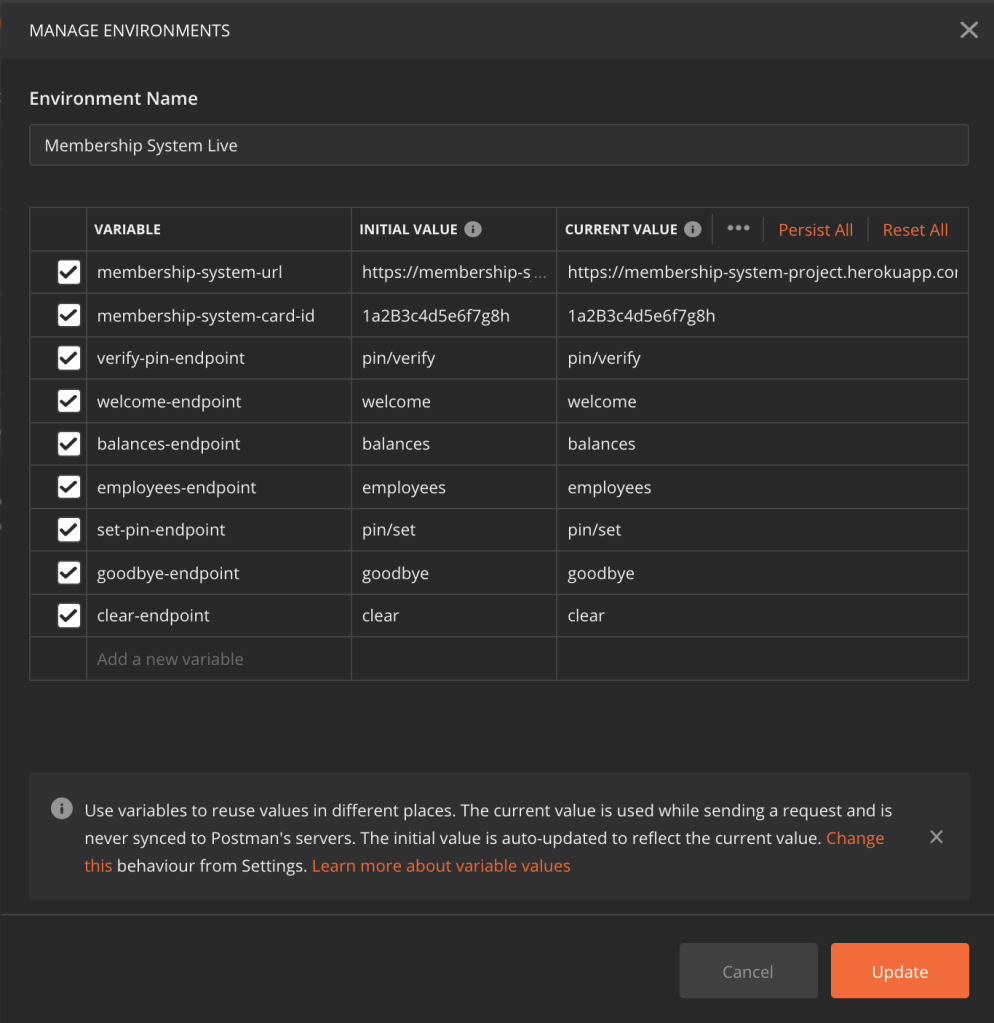 That is because I have stored each part of the URL as an environment variable, stored in my “Membership System Live” environment.