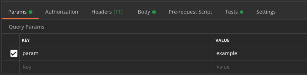 You can also see in the URL, there is a ? followed by param=example. The question mark is how we pass parameters in the URL. Postman breaks these out in the Params tab.